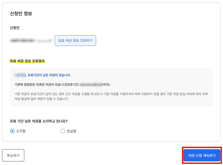 - 기존 여권(유효기간이 남아 있는 경우)