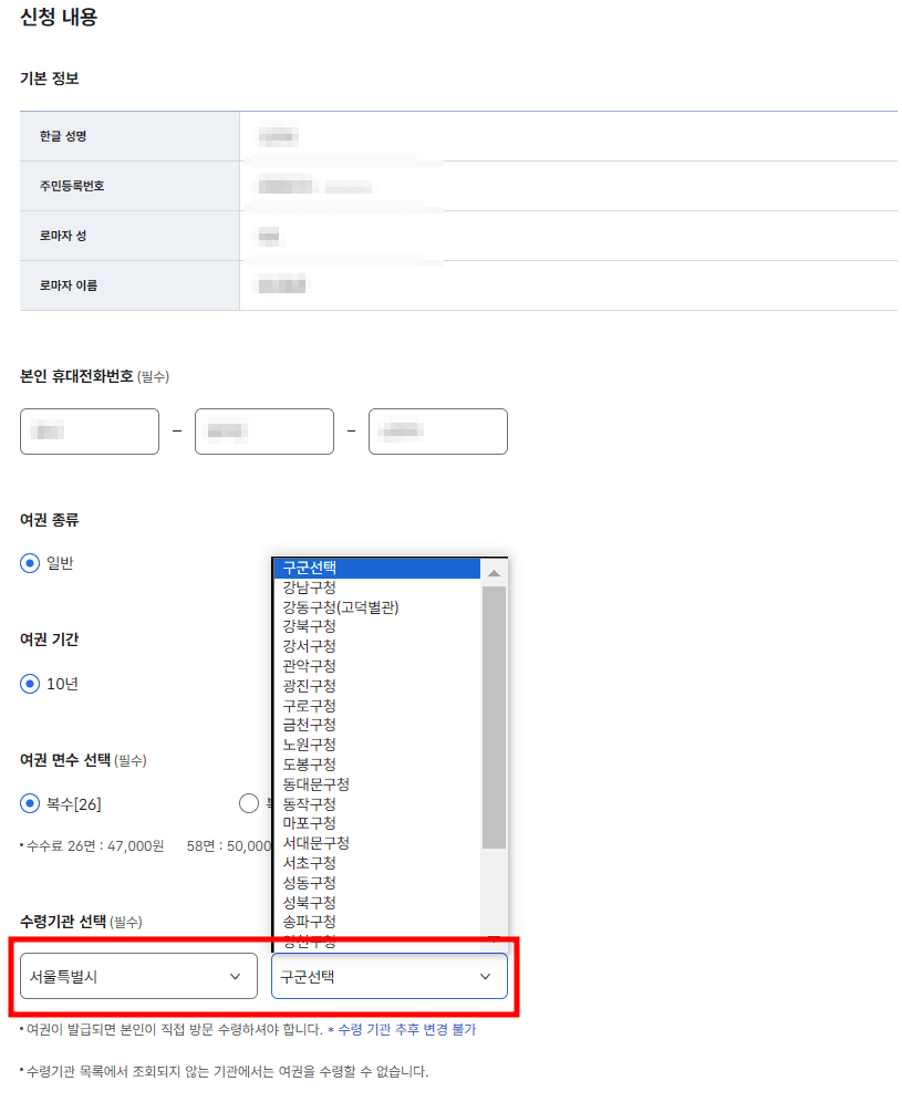 여권 재발급 온라인 신청 비용(가격)
