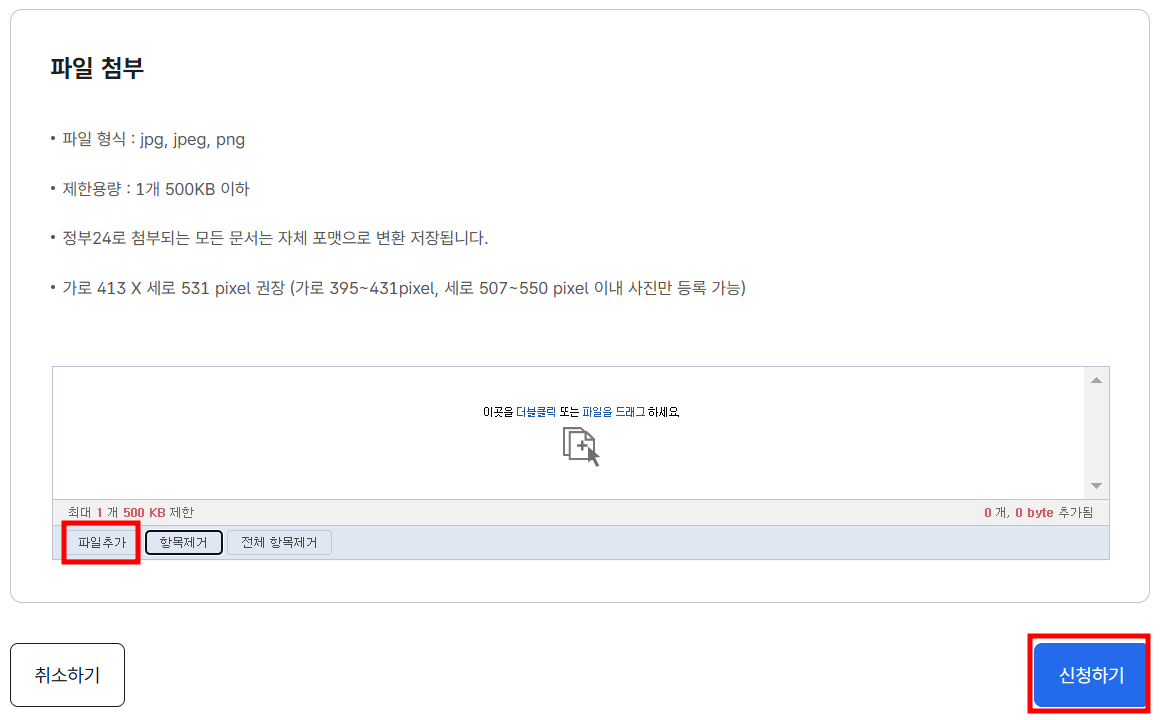 아래에서 더 자세한 사진 규정을 확인하세요.