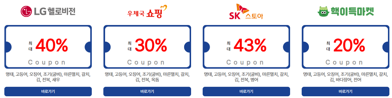 2024 추석을 맞이하여 알뜰하게 온라인과 오프라인으로 저렴하게 구입하실 수 있는 곳을 알려드리겠습니다. 아래의 표는 종류별 할인 내용입니다.